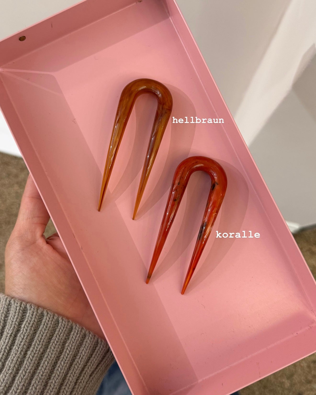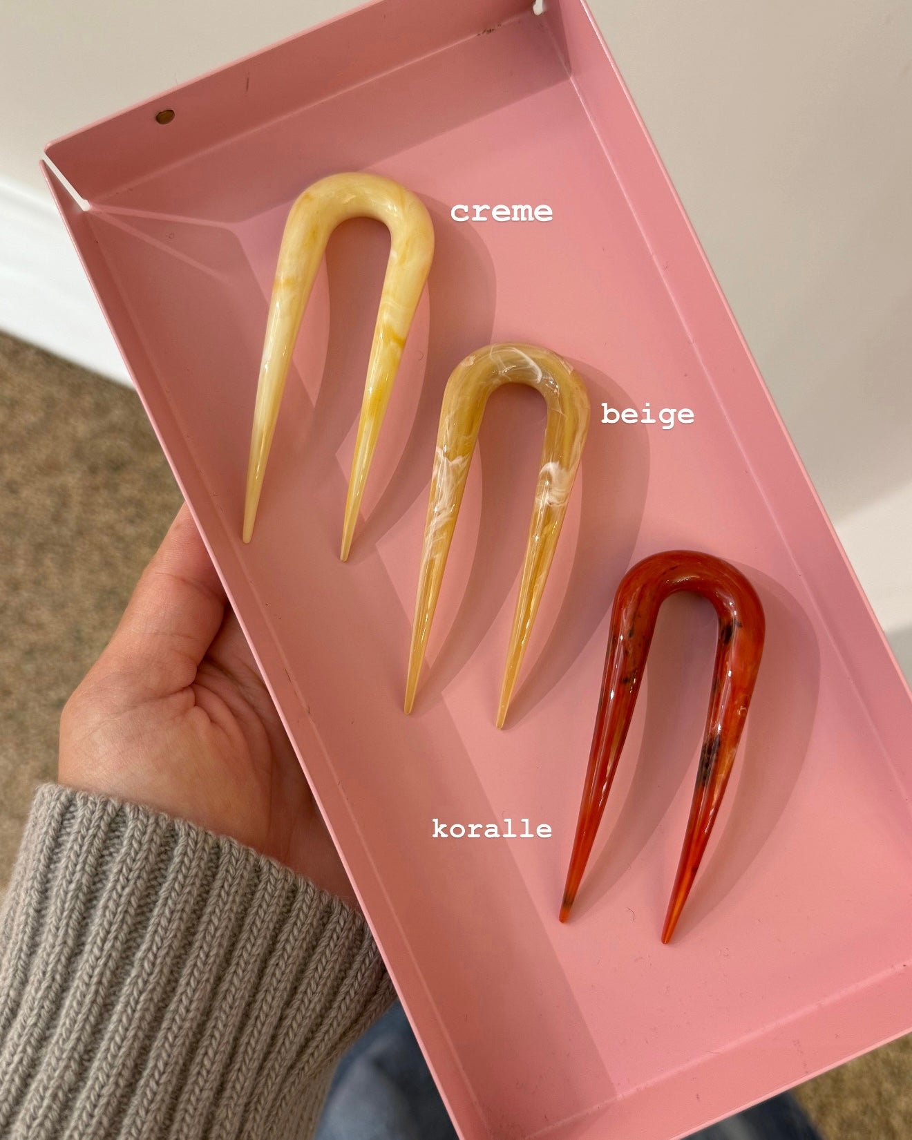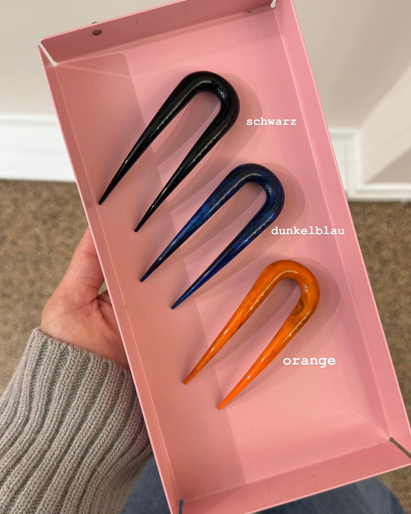 Glatte und haarschonende Haarnadel in 3 tollen Farbvarianten und zwei Größen. Sie ist aus einem Stück gefertigt und ideal für Hochsteckfrisuren.